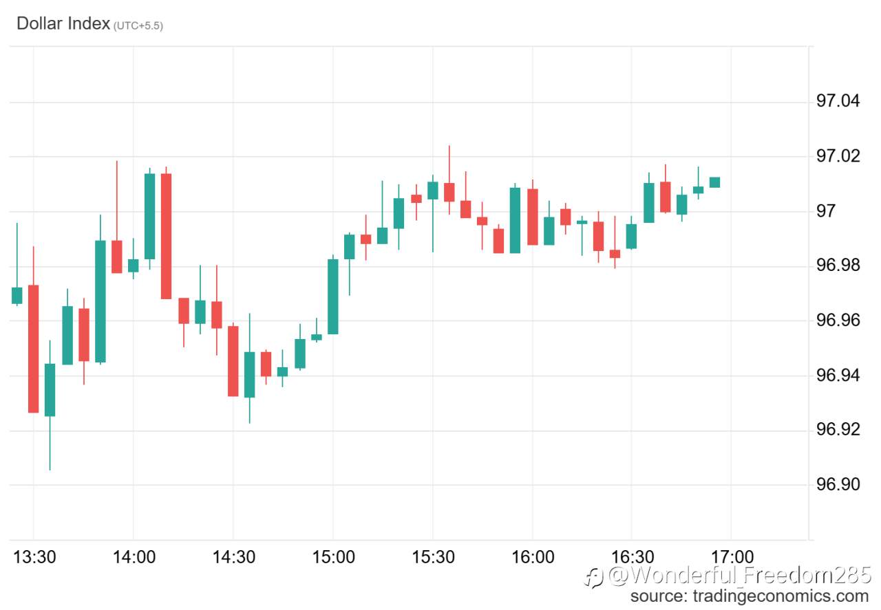 Dollar steady below 97.