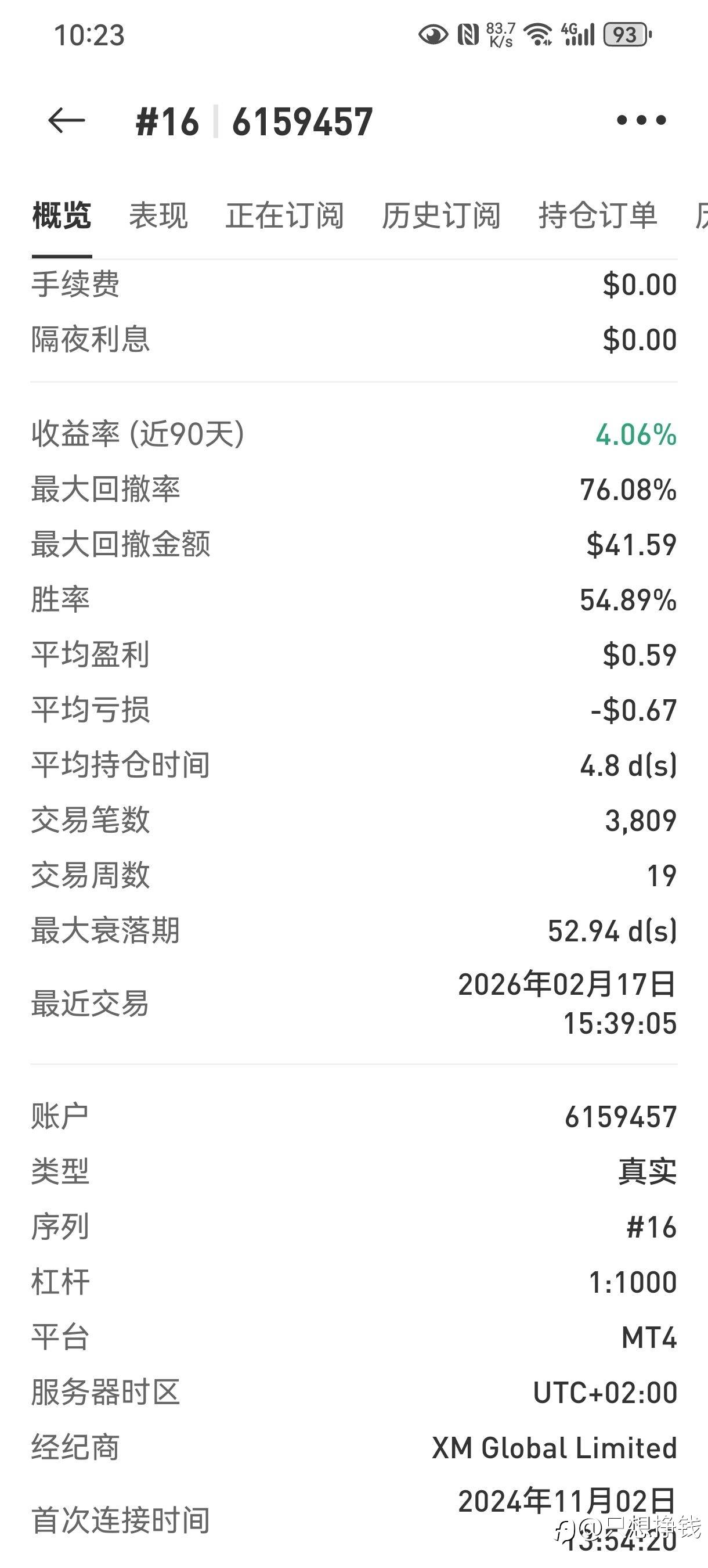 连接账号已经超一年了,为啥交易周数和交易笔数都少这么多呀? 风险提示:本文所述仅代表作者个人观点,不代表 Followme 的官方立场。Followme 不对内容的准确性、完整性或可靠性作出任何保证,对于基于该内容所采取的任何行为,不承担任何责任,除非另有书面明确说明。