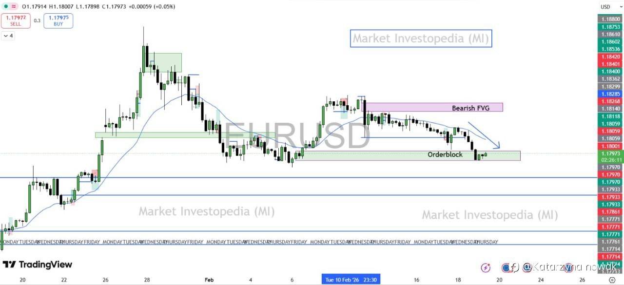 EUR/USD respected the identified order block zone, with price reacting from support and declining in line with the previously shared analysis and expectations.