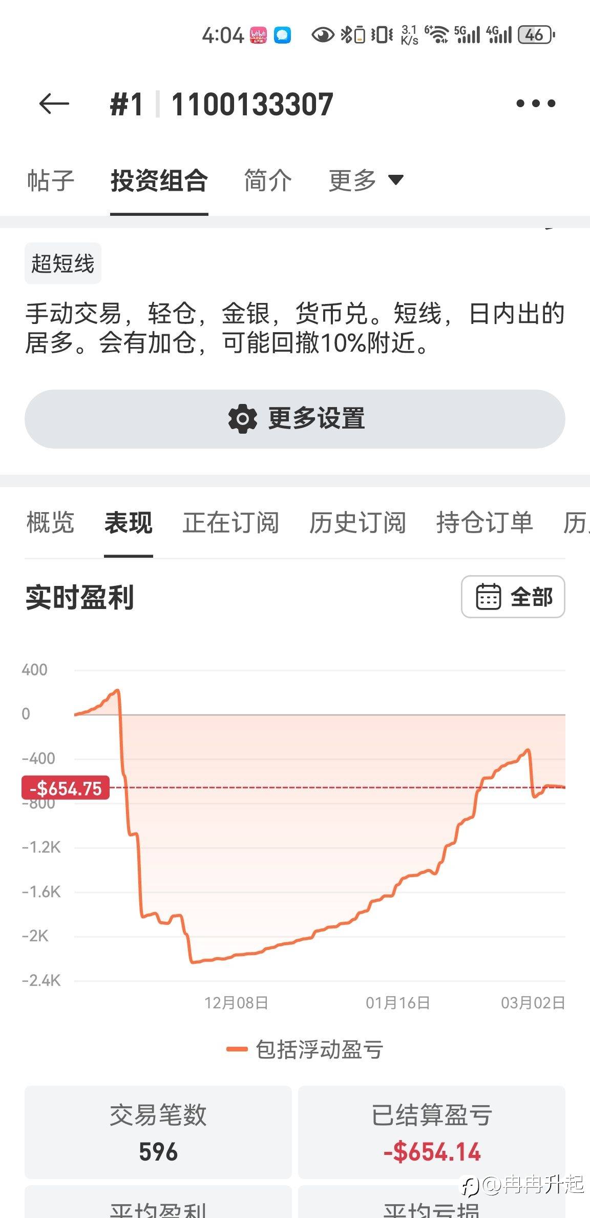 今早亏8美金,没睡醒啊。 风险提示:本文所述仅代表作者个人观点,不代表 Followme 的官方立场。Followme 不对内容的准确性、完整性或可靠性作出任何保证,对于基于该内容所采取的任何行为,不承担任何责任,除非另有书面明确说明。