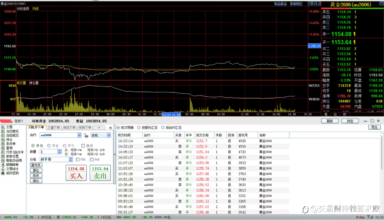 新搞了个内盘黄金交易。 风险提示:本文所述仅代表作者个人观点,不代表 Followme 的官方立场。Followme 不对内容的准确性、完整性或可靠性作出任何保证,对于基于该内容所采取的任何行为,不承担任何责任,除非另有书面明确说明。