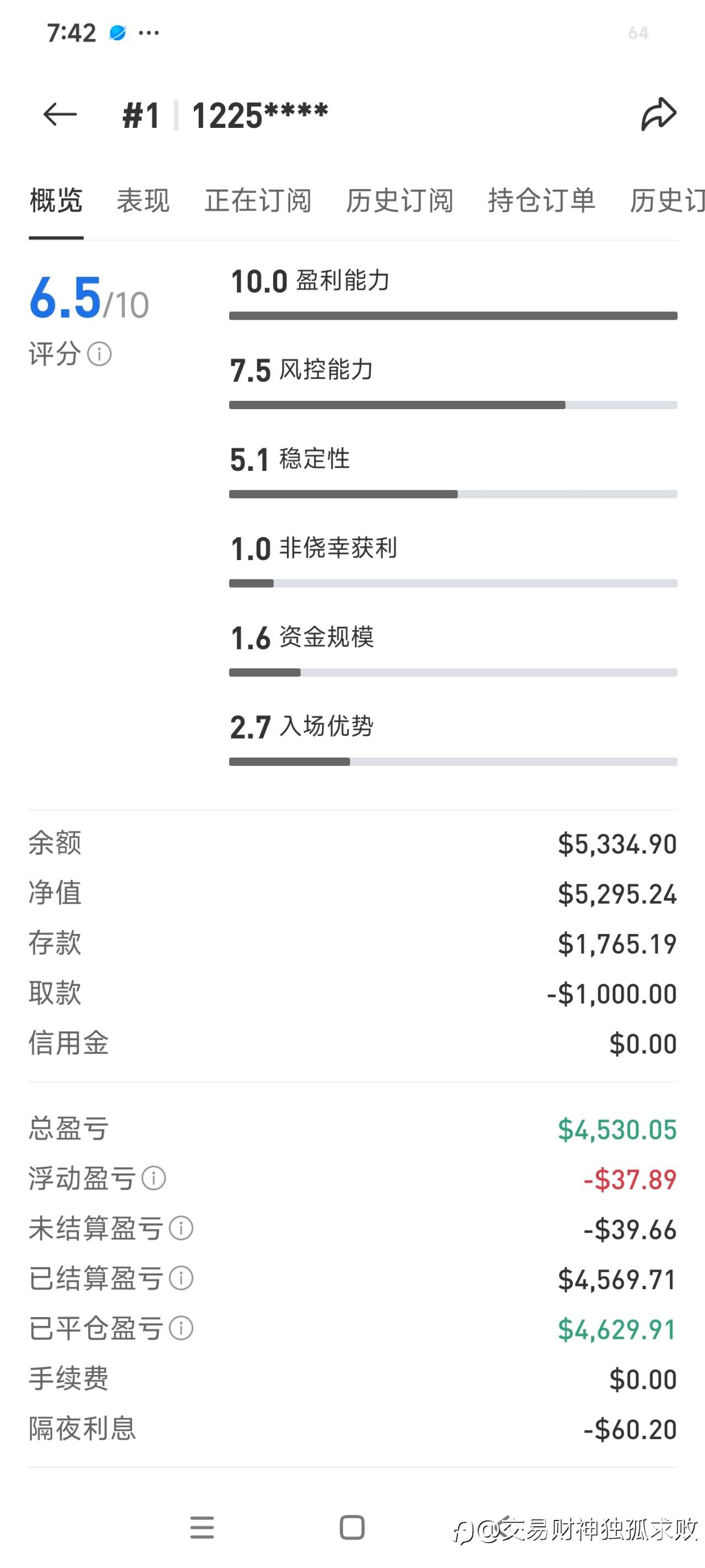 记录一下此交易员!订阅费合理!此人可能是优秀交易员! 风险提示:本文所述仅代表作者个人观点,不代表 Followme 的官方立场。Followme 不对内容的准确性、完整性或可靠性作出任何保证,对于基于该内容所采取的任何行为,不承担任何责任,除非另有书面明确说明。