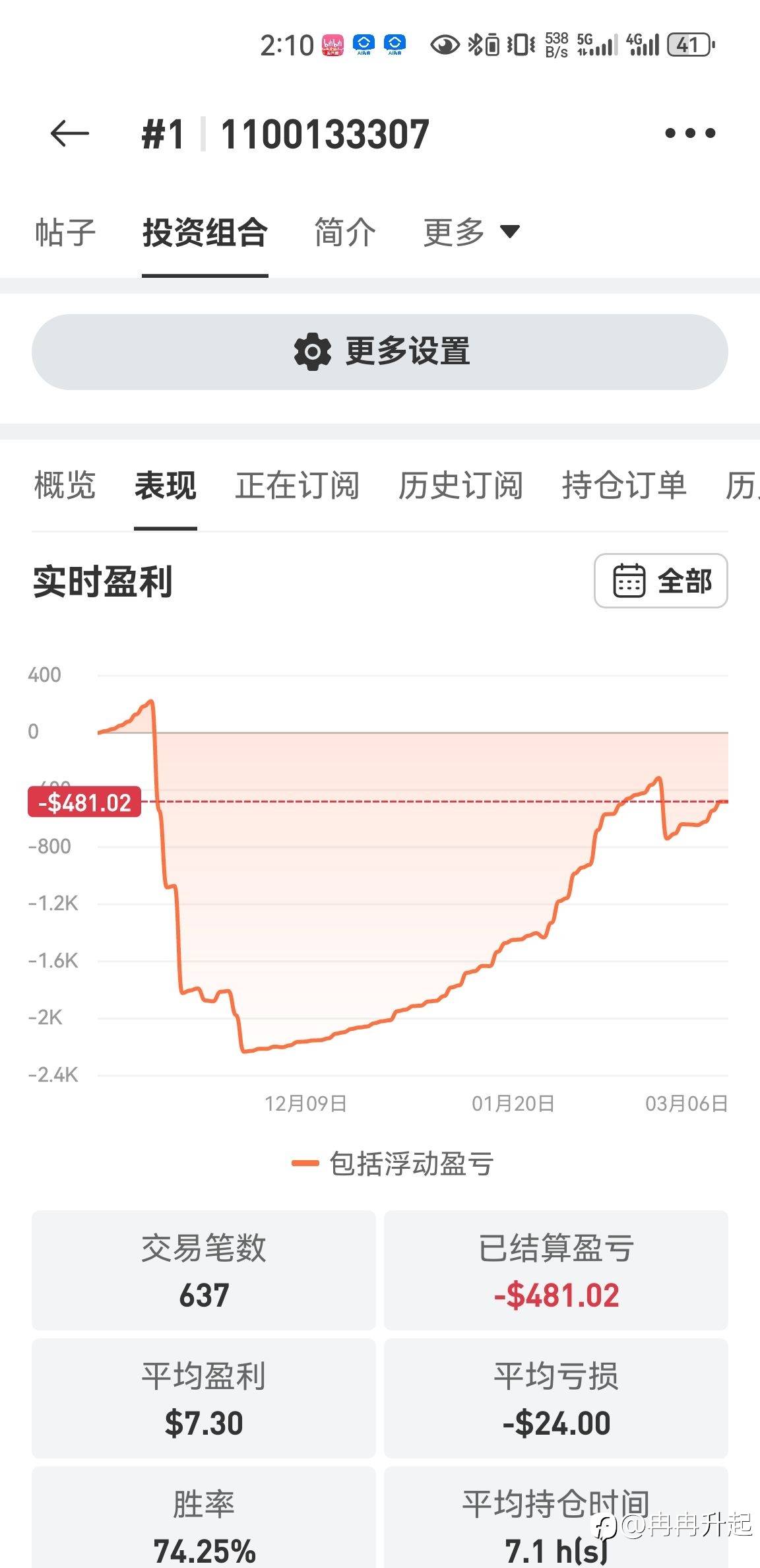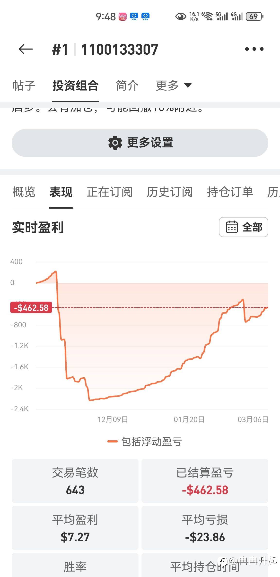 今天赚回60,还差481回来。 风险提示:本文所述仅代表作者个人观点,不代表 Followme 的官方立场。Followme 不对内容的准确性、完整性或可靠性作出任何保证,对于基于该内容所采取的任何行为,不承担任何责任,除非另有书面明确说明。