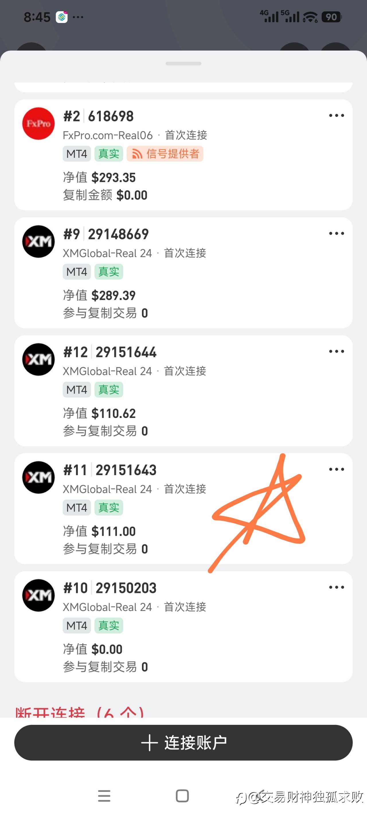 11号帐户最新净值:111刀。 风险提示:本文所述仅代表作者个人观点,不代表 Followme 的官方立场。Followme 不对内容的准确性、完整性或可靠性作出任何保证,对于基于该内容所采取的任何行为,不承担任何责任,除非另有书面明确说明。