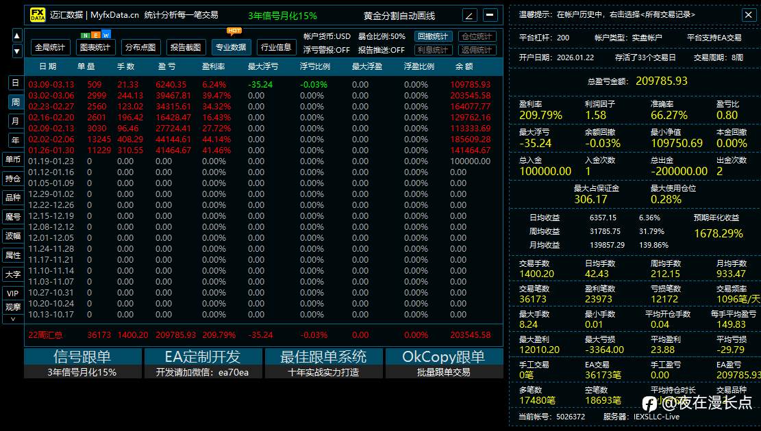 8 周内以 0.03% 的极微小回撤创下了 209.79% 风险提示:本文所述仅代表作者个人观点,不代表 Followme 的官方立场。Followme 不对内容的准确性、完整性或可靠性作出任何保证,对于基于该内容所采取的任何行为,不承担任何责任,除非另有书面明确说明。