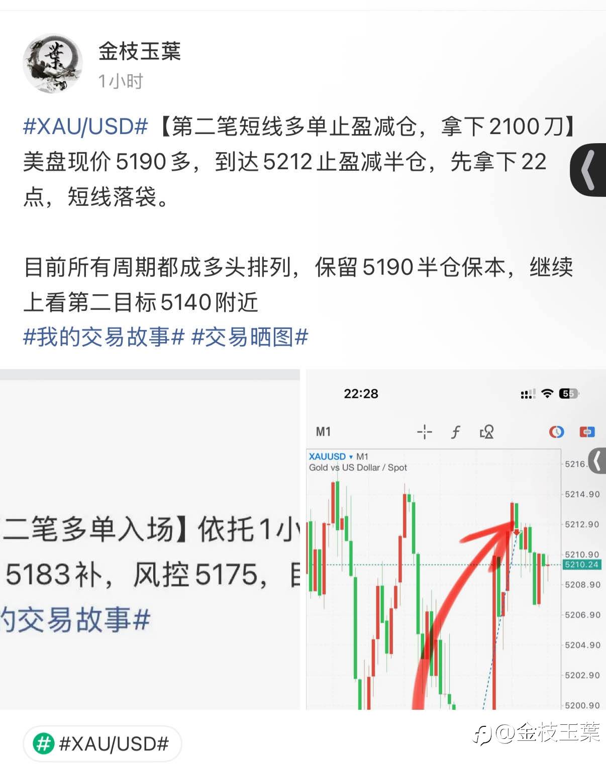 #XAU/USD# 【第二笔多单全部止盈离场,拿下6900刀】 美盘现价5190多,分别在5212止盈减仓,先拿下22点,随后底仓在5138止盈离场,再次拿下47点。 综合拿下22+47=69点 #我的交易故事# #交易晒图# 风险提示:本文所述仅代表作者个人观点,不代表 Followme 的官方立场。Followme 不对内容的准确性、完整性或可靠性作出任何保证,对于基于该内容所采取的任何行为,不承担任何责任,除非另有书面明确说明。