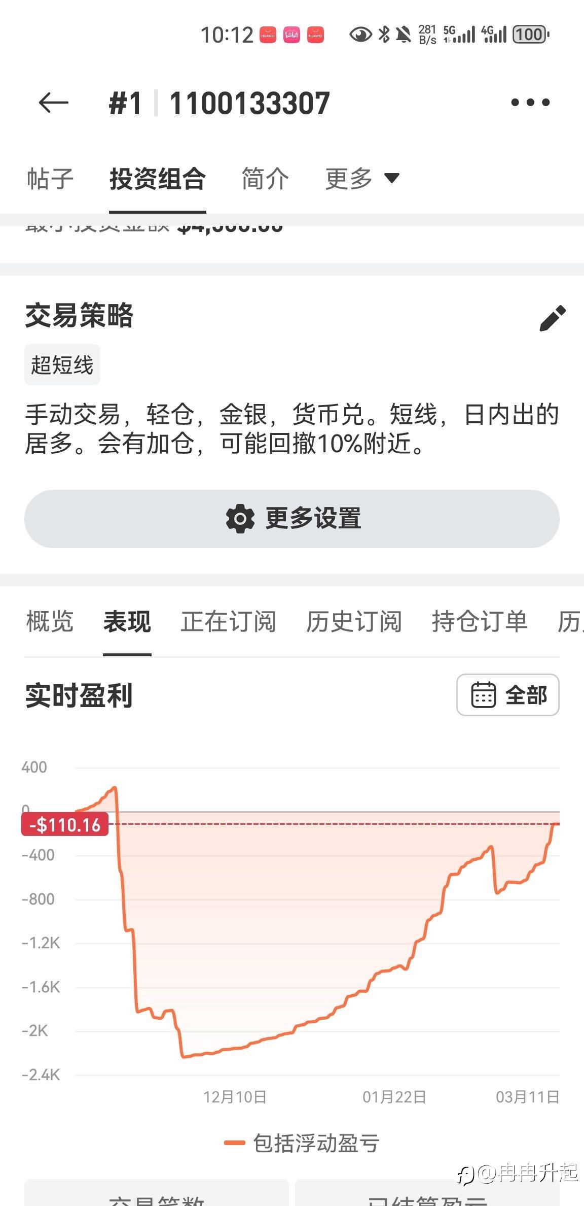 三个半月亏了一半的,稳稳赚回来,哈哈。 风险提示:本文所述仅代表作者个人观点,不代表 Followme 的官方立场。Followme 不对内容的准确性、完整性或可靠性作出任何保证,对于基于该内容所采取的任何行为,不承担任何责任,除非另有书面明确说明。