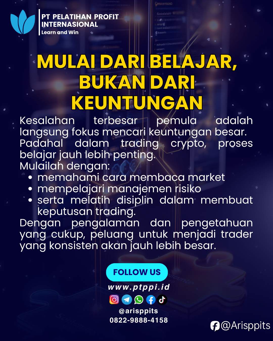 serta belajar trading secara bertahap.
