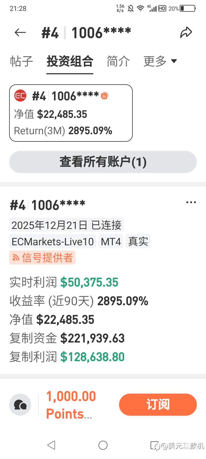 这位选手很优秀,几个月赚了几十倍收益,周末看看交易高手,这位选手还是很厉害的,才几个月就翻了几十倍收益,净赚五万美金$……很稳,稳如老狗! 已编辑 14 Mar 2026, 21:41 风险提示:本文所述仅代表作者个人观点,不代表 Followme 的官方立场。Followme 不对内容的准确性、完整性或可靠性作出任何保证,对于基于该内容所采取的任何行为,不承担任何责任,除非另有书面明确说明。
