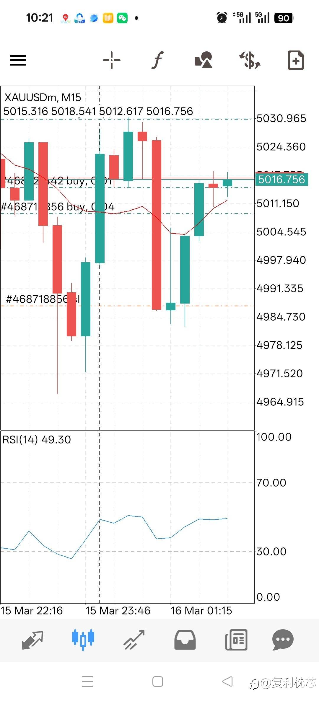 早盘黄金焦灼大战,让我多空双赢变双损,最直接的问题是我犹豫了,我想到一个问题,资金太小的如果跟我经不起折腾,所以我犹豫了,今天结束设置订阅资金最低要求500刀,不然跟我根本不可能盈利。 风险提示:本文所述仅代表作者个人观点,不代表 Followme 的官方立场。Followme 不对内容的准确性、完整性或可靠性作出任何保证,对于基于该内容所采取的任何行为,不承担任何责任,除非另有书面明确说明。