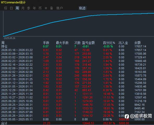 鱼鹰EA 3.0 截止目前10个多月总盈利252.97%,全天24小时自动化交易,不用人工干预 风险提示:本文所述仅代表作者个人观点,不代表 Followme 的官方立场。Followme 不对内容的准确性、完整性或可靠性作出任何保证,对于基于该内容所采取的任何行为,不承担任何责任,除非另有书面明确说明。