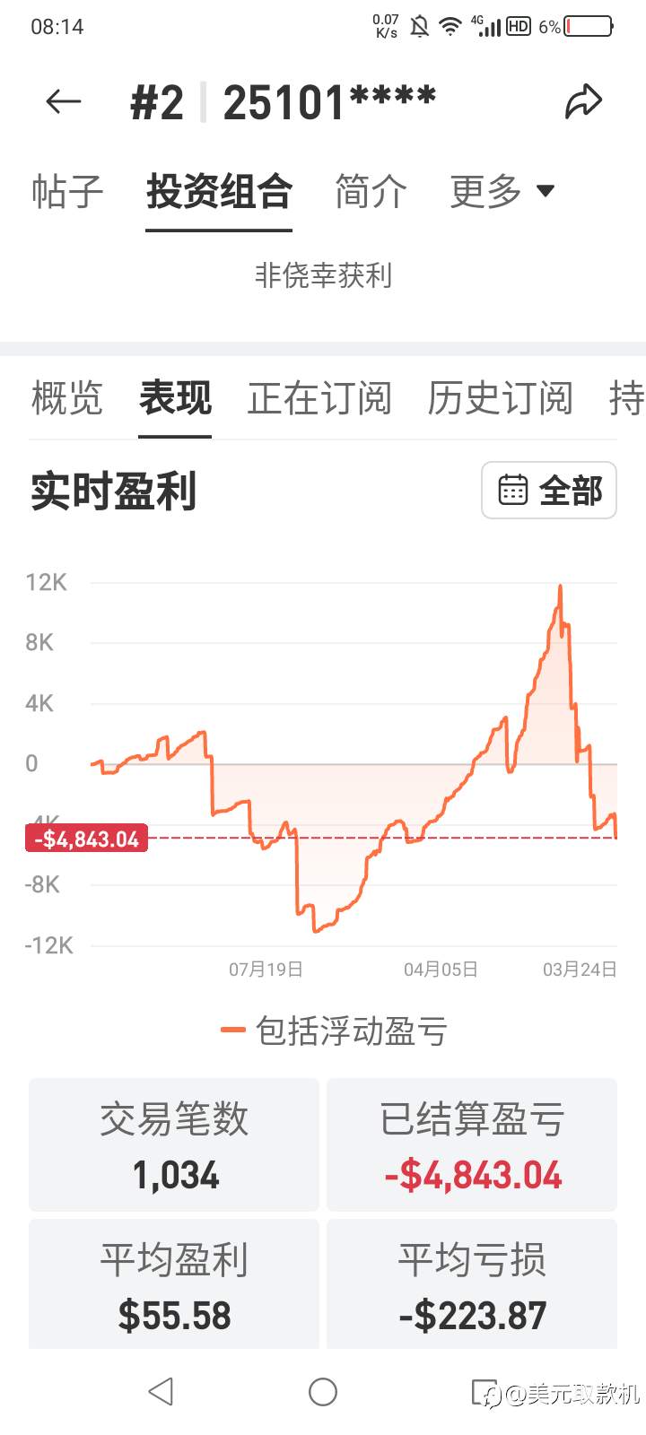这位交易选手已经具备交易成功的潜质,从亏到赚,再赚到亏,很接近成功了,万事俱备只欠轻仓顺势交易了。 风险提示:本文所述仅代表作者个人观点,不代表 Followme 的官方立场。Followme 不对内容的准确性、完整性或可靠性作出任何保证,对于基于该内容所采取的任何行为,不承担任何责任,除非另有书面明确说明。