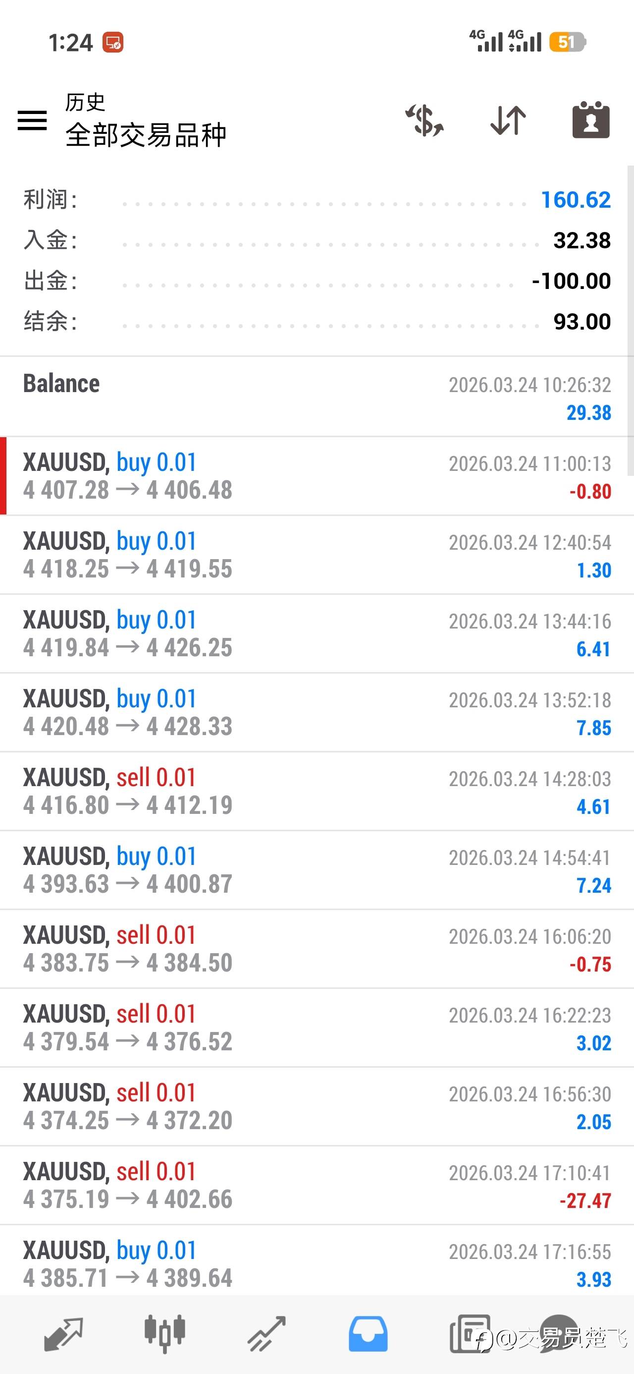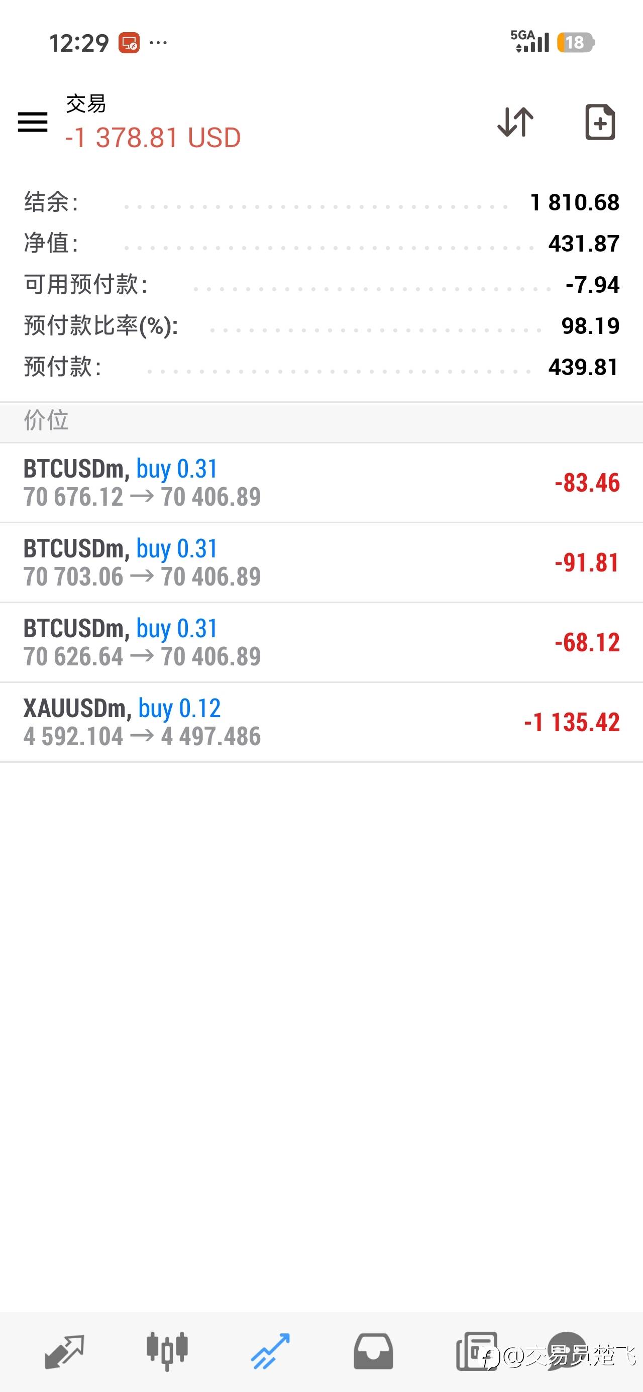 新开了个账号,然后手动操作,果然不出所料又一晚上爆了,还把那个挂EA的号也搞爆了(挂了跟单),真是服了,痛定思痛,继续优化EA,优化过后的EA果然又强大了很多,一次一单,单单带损,不到两天做了五倍利润了,虽然资金小了点,但是只要技术到位,一切都是可以做起来的!!! 风险提示:本文所述仅代表作者个人观点,不代表 Followme 的官方立场。Followme 不对内容的准确性、完整性或可靠性作出任何保证,对于基于该内容所采取的任何行为,不承担任何责任,除非另有书面明确说明。