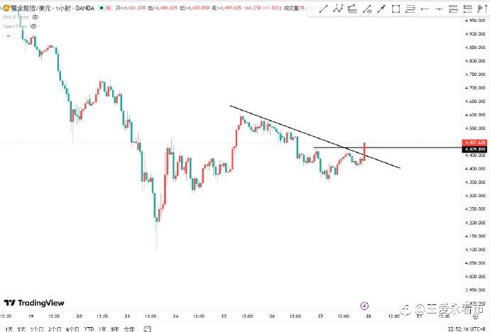 #黄金#突破了。 风险提示:本文所述仅代表作者个人观点,不代表 Followme 的官方立场。Followme 不对内容的准确性、完整性或可靠性作出任何保证,对于基于该内容所采取的任何行为,不承担任何责任,除非另有书面明确说明。