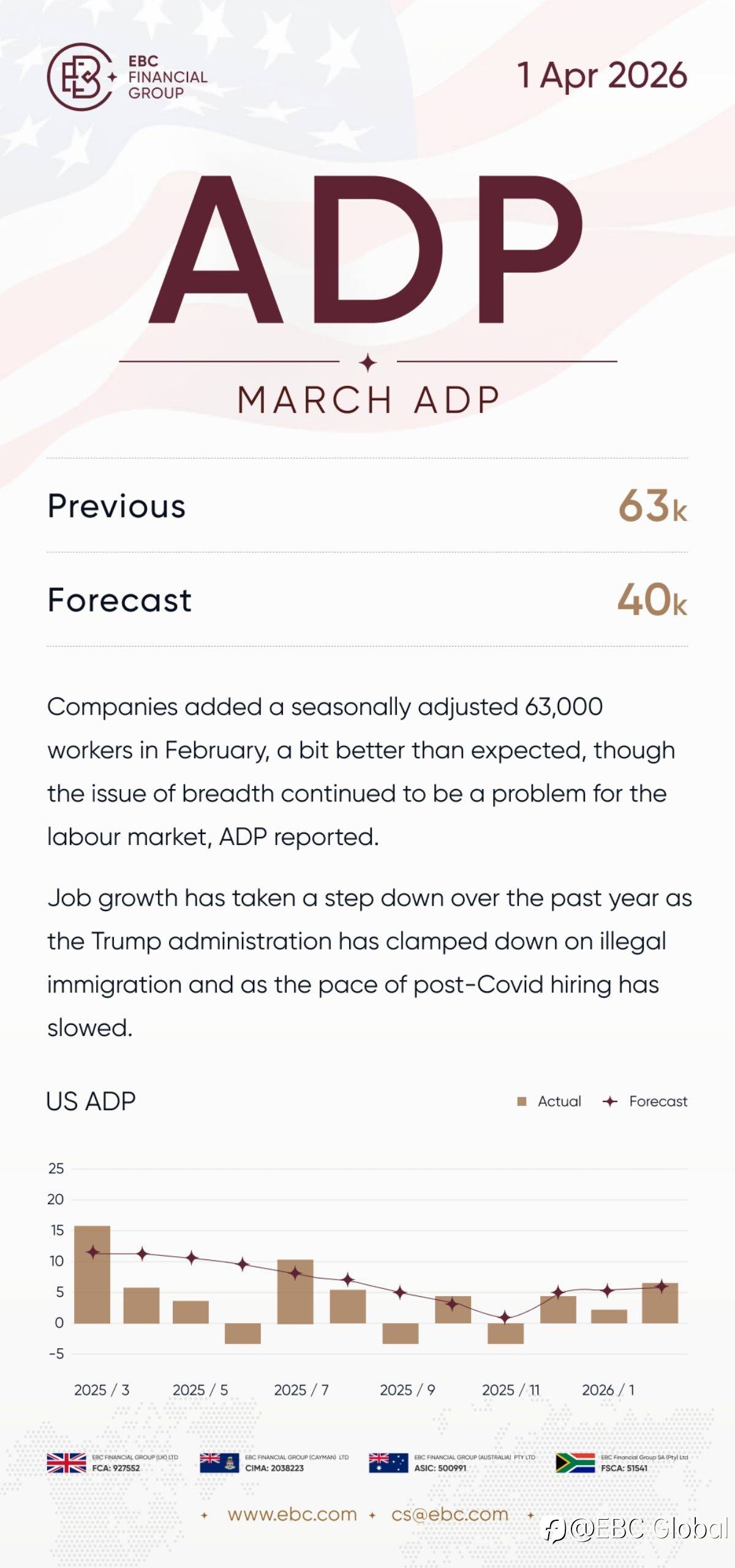 March ADP 1/4/2026 (Wed) Previous: 63k Forecast: 40k