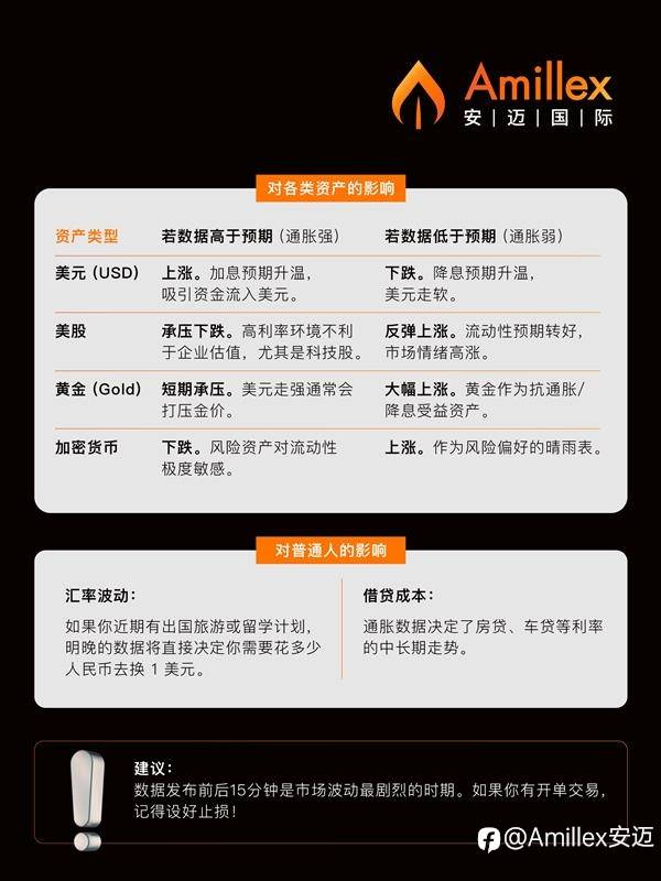 美股 & 加密货币: 极度敏感。高通胀环境将持续压低企业估值,反之则利好风险偏好。