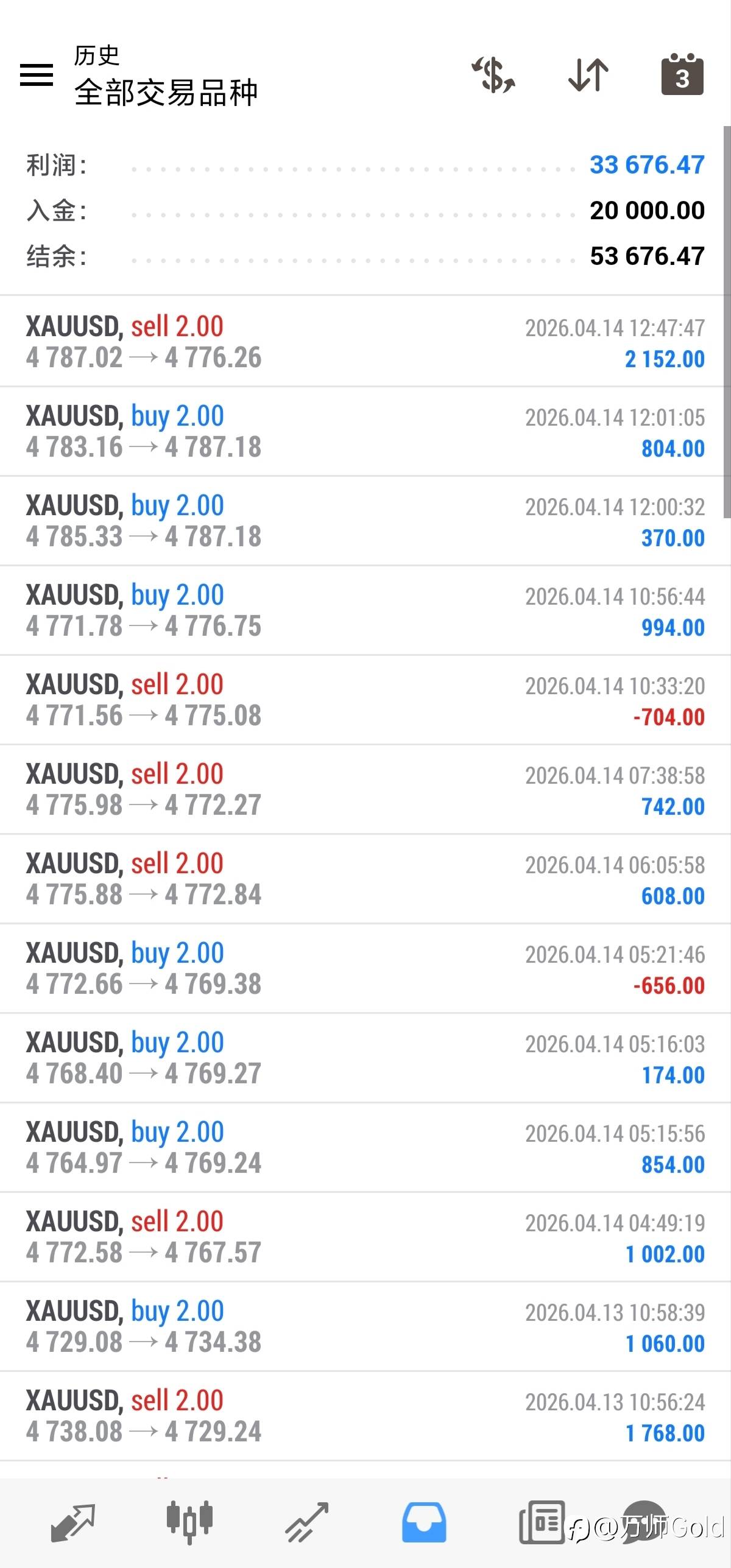 #XAU/USD#李先生20000→100000翻舱计划4.14第11郸,4787一线箜4776出1~點再为计划添砖加瓦。目前53676。