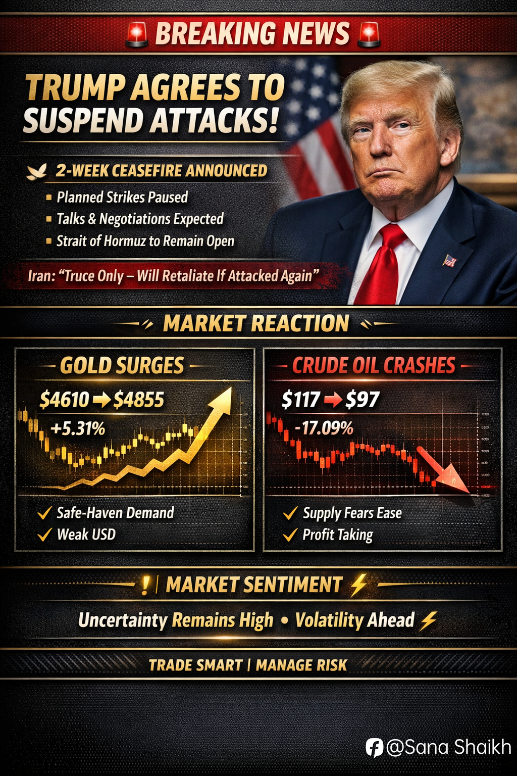 Oil: Below $100 → geopolitical premium easing, but still sensitive