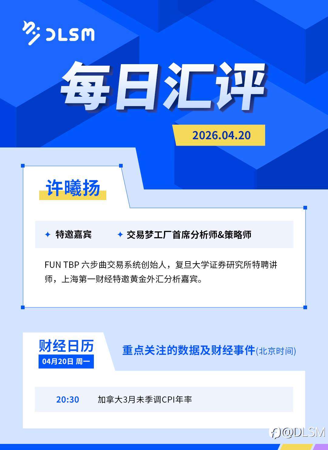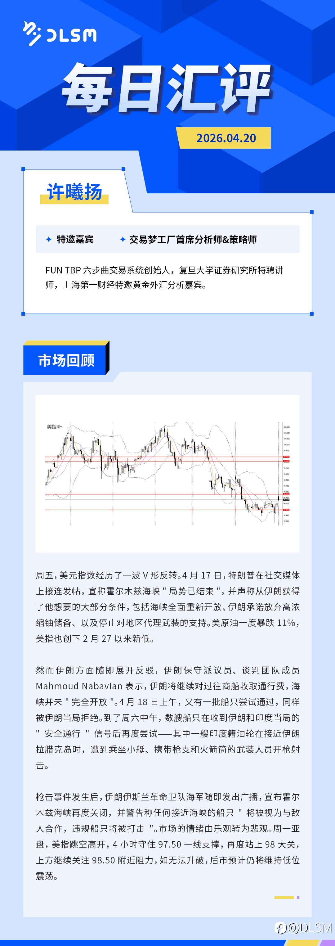 🔥DLSM·26年04月20日·每日汇评 风险提示:本文所述仅代表作者个人观点,不代表 Followme 的官方立场。Followme 不对内容的准确性、完整性或可靠性作出任何保证,对于基于该内容所采取的任何行为,不承担任何责任,除非另有书面明确说明。