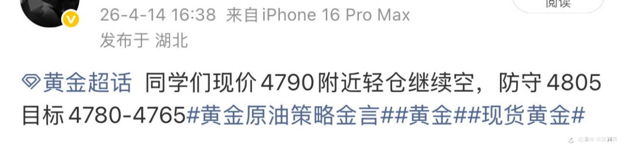 4790附近进场做多,防守止损4778,短线目标看4840-4880上方#XAU/USD#