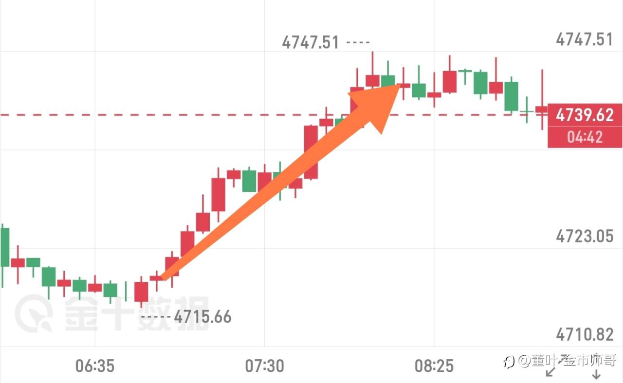 早间开盘,价格在4710-4720之间震荡,站稳10上方,技术面上,多头趋势占优。 4716进场,4739出场,1129🔪落袋。 朴实无华的23点。 风险提示:本文所述仅代表作者个人观点,不代表 Followme 的官方立场。Followme 不对内容的准确性、完整性或可靠性作出任何保证,对于基于该内容所采取的任何行为,不承担任何责任,除非另有书面明确说明。