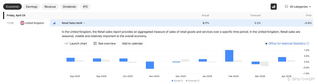 Hari Jumat ini, UK kasih kejutan: Retail Sales MoM: 0.7% (forecast 0.2%, sebelumnya -0.6%)