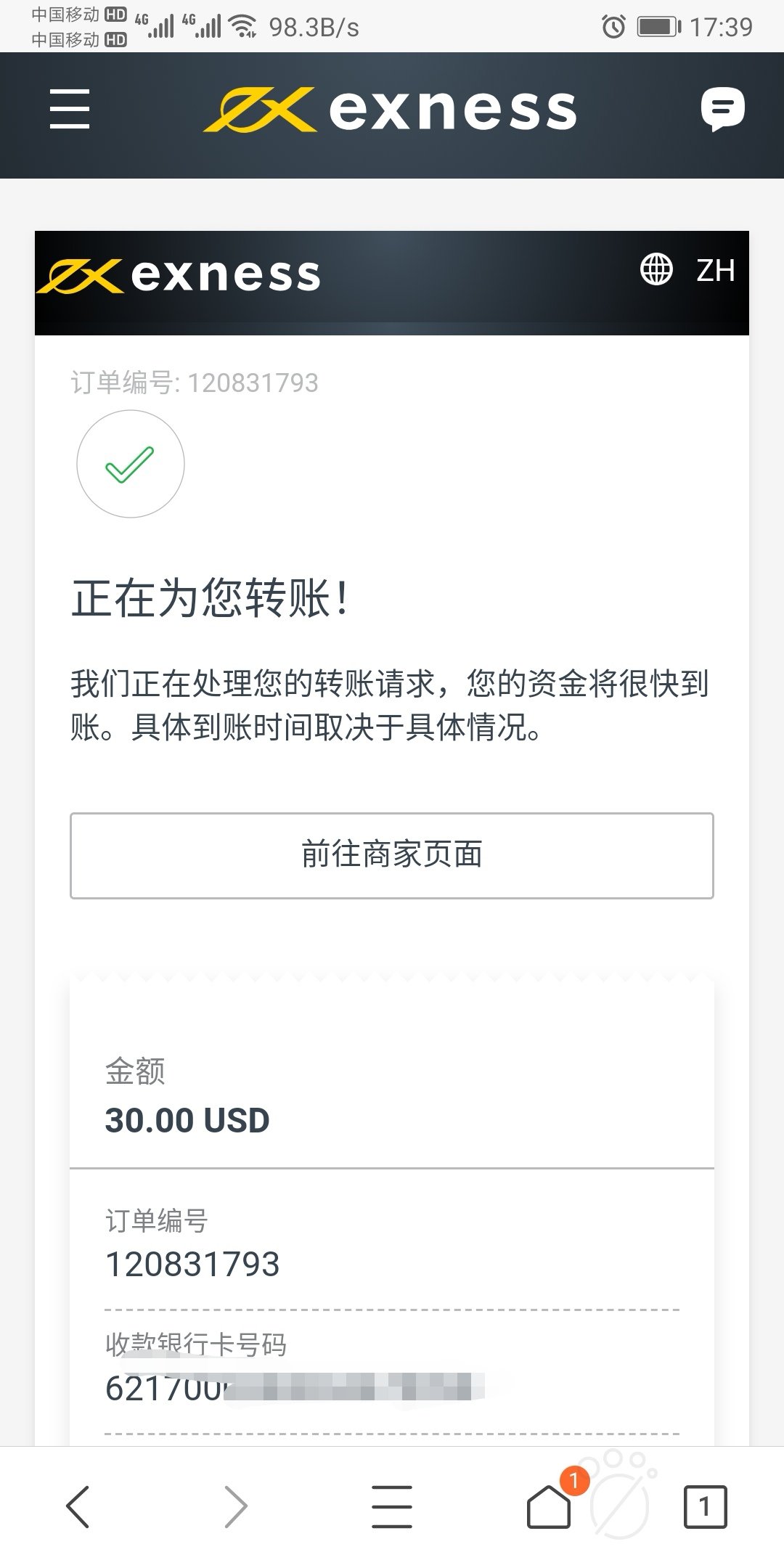 这些天不断有人在IC的群里发出金被风控,搞得人心惶惶,我说一下近期我的出金情况,我在ICMarkests、ECMarkests和Exness三个平台都有出金,对比一下三个平台,Exness最方便,不管你入金时用银行卡入了多少,只有用USDT入过,都可以选择用U出金,出金速度极快(5分钟以内);ECMarkests和ICMarkests要求先将银行卡入金的额度用完后,盈利部分都可以用U出,但ECMarkests银行卡出金速度基本上当天到账,IC的速度看情况,最快的时候早上9点前申请,当天晚上到账,正常情况下都要两三天。但我目前可能运气好,这几个平台还没有被风控过。去年在Tickmill出金金额可
