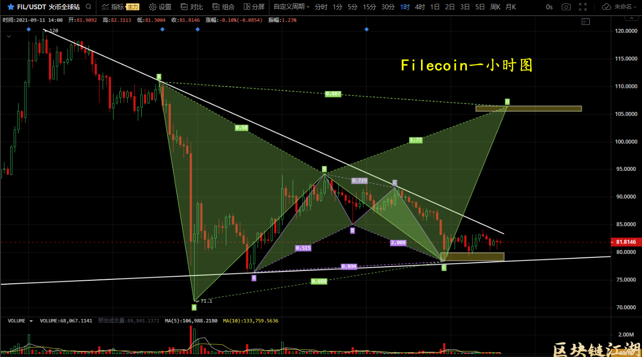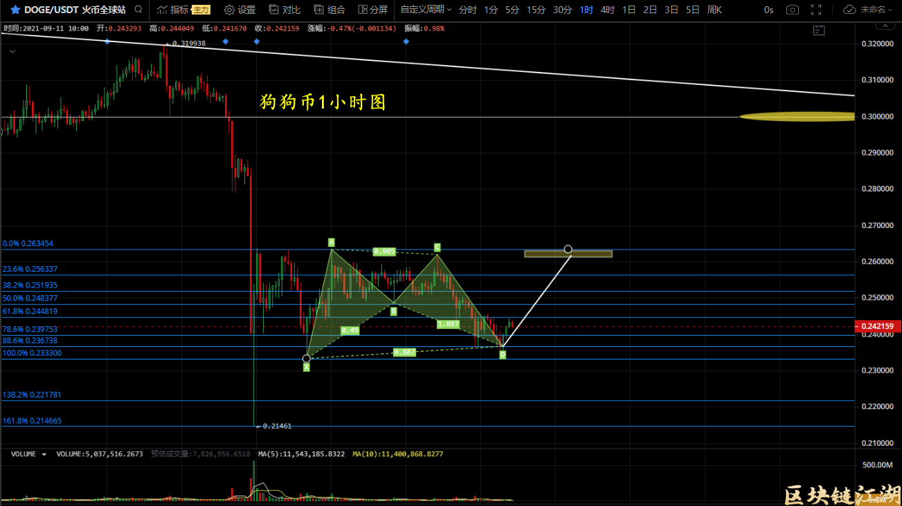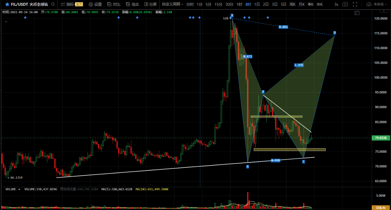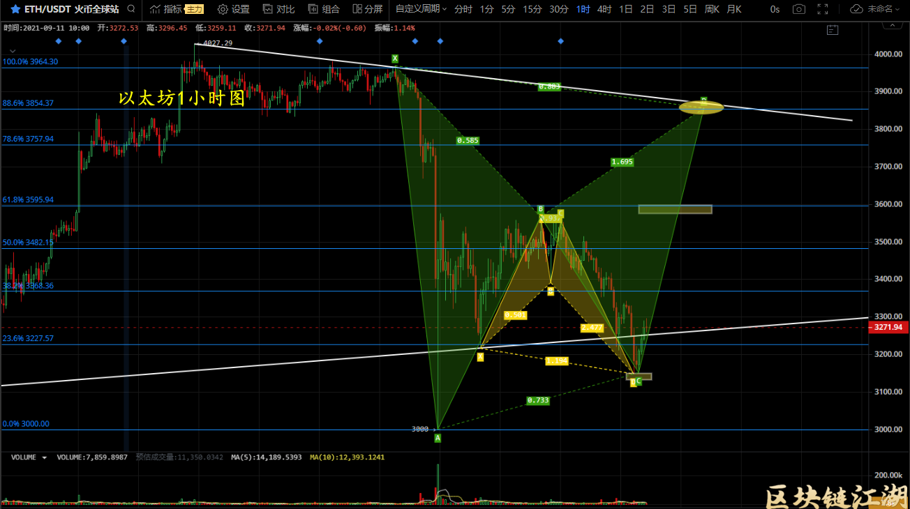 夏风,越来越远;秋意,越来越浓。秋高气爽,遍地红枫,枝头桂花,别是一番姹紫嫣红。秋分,爽朗,像似久别重逢的恋人,经过了漫长的煎熬,思念把对方疯长在脑海,按捺不住的汹涌澎湃。秋风清,秋露冷,秋月光满,桂花飘香。将秋日的时光对折,一半许给繁华,一半留给静谧。落日萧萧,菊花欲开,即凄凉,又清爽!最后,夏天成了故事,秋天成了风景,秋亦从容,我亦从容。 比特币价格在反弹中测试44000美元的压力并有站稳的意向,可见这波下跌之中的抄底资金还算给力,但大的风险还未改变,依旧是老徐昨天说的日线级别蝙蝠形态。但从小级别走势来看,比特币价格走势在构建鲨鱼后市看跌形态,目前比特币走势正在完成CD反弹阶段,而反弹的目