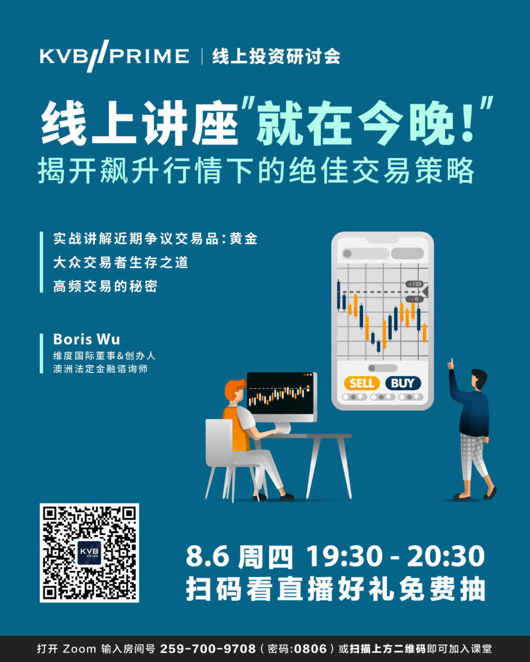 黄金行情持续狂飙,一举站上2000关口,最高甚至来到2050的高位,再次刷新历史新高,面对千载难逢的飙升行情,哪一种交易策略最能帮助投资者把握机会?顶级讲师全面剖析趋势交易和高频交易的盈利秘辛,助你掌握交易生存之道全球领先的交易商 KVB PRIME 将于8月6日晚上19:30举办线上投资研讨会,并邀请澳大利亚知名投资机构维度国际创始人Boris Wu作为主讲人。今晚线上讲座将为投资者带来三个主题:1:实战讲解近期最受争议交易品:黄金 2:大众交易者生存之道3:高频交易的秘密KVBPRIME 特约分析师Boris Wu将详细讲解进行趋势交易和高频交易时的关注重点,并以近期出现飙涨行情