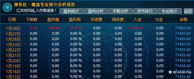 1月28日 收益图 账户1:收益4109,占比6.1%(EA),67723-71832 账户2:收益35697,占比21.7%(手动+EA),164445-180142(取款20000跑ea)