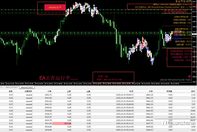 前段时间和大家说的EBC的BTCUSDT交易品种,我就开始着手弄了一个量化交易EA开始运行,经过几次反复修正之后,进本来是运行了!(不过这东西主要靠自己去写,工程量太大了,所以,我直接去跟单社区好的量化跟单信号,根据他的交易逻辑直接扒了一个。)搞个交易大赛!报名即有机会瓜分 15 万!1V1 PK 赛火热进行中!(交易是规则下的概率,也是运气!)(感兴趣的交易员朋友们可以关注下这个交易大赛!)#投资高手##EA的致命弱点是什么#ea#EA交易讨论专区# 先看原版的量化交易ea的真实账户交易逻辑!(我是根据原版的量化交易策略ea编