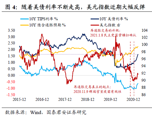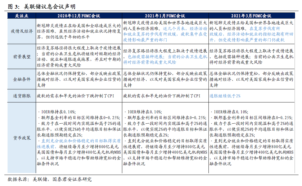 国君覃汉团队认为,如果后续美联储提前收紧得到确认,那么美元将进入中期上升通道,叠加美债利率加快上行,海外资产面临挤泡沫风险,新兴市场将面临资本流出压力。 报告导读 警惕美联储“鸽派”的外表下隐藏着一颗“鹰派”的心。本次会议美联储按兵不动,重申维持宽松和Taper为时尚早、点阵图不加息中位数预期不变确实可以给市场带来暂时的安抚。但是,上调经济增速和通胀预期和预期2023年加息的官员比例近四成,意味着美联储转向并不遥远,最后的宽松渐行渐远。另外,市场期待的扭曲操作则完全被鲍威尔“无视”。 年初以来美债利率不断走高,美元指数近期大幅反弹,中期看空美元的一致预期开始动摇。相比年初,疫苗接种进展和财政刺