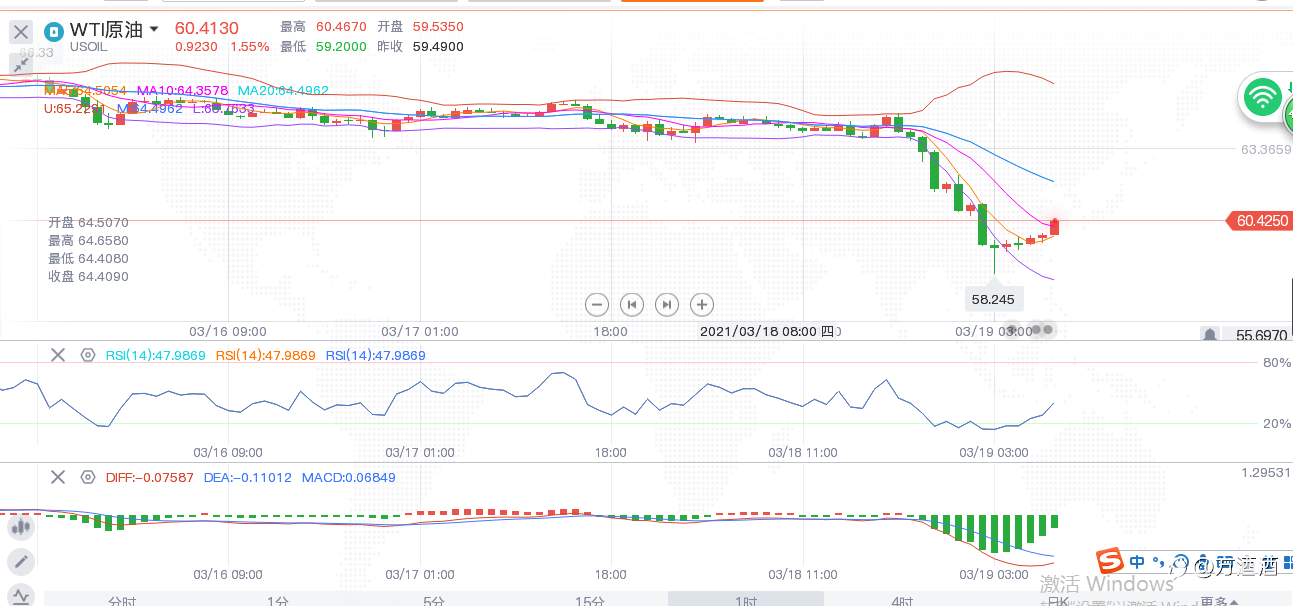 各位投资朋友大家好,我是方酒酒: 周五(3月19日)原油小幅度上涨,而昨日周四(3月18日)油价暴跌,以及美元的走强,这对油价进一步加大了油价的跌幅,另外多个欧洲国家将重启对阿斯利康疫苗的接种,因欧洲新一波疫情汹涌而至感染人数不断上升,几个欧洲大型经济体不得不重新实施封锁。意大利大片地区将从本周一开始升级为红色区域,所有学校关闭,非生活必需品的零售商店也关门,餐馆只允许提供外卖食品,人们的行动自由受限,非必要不得外出,令人们的担忧加剧,同时,由于担心在欧洲广泛使用的阿斯利康疫苗的副作用,欧洲的疫苗接种计划正在全面放缓,这将有利于缓解市场的焦躁情绪。而第三波的疫情的到来在油价高位震荡之际给了多头