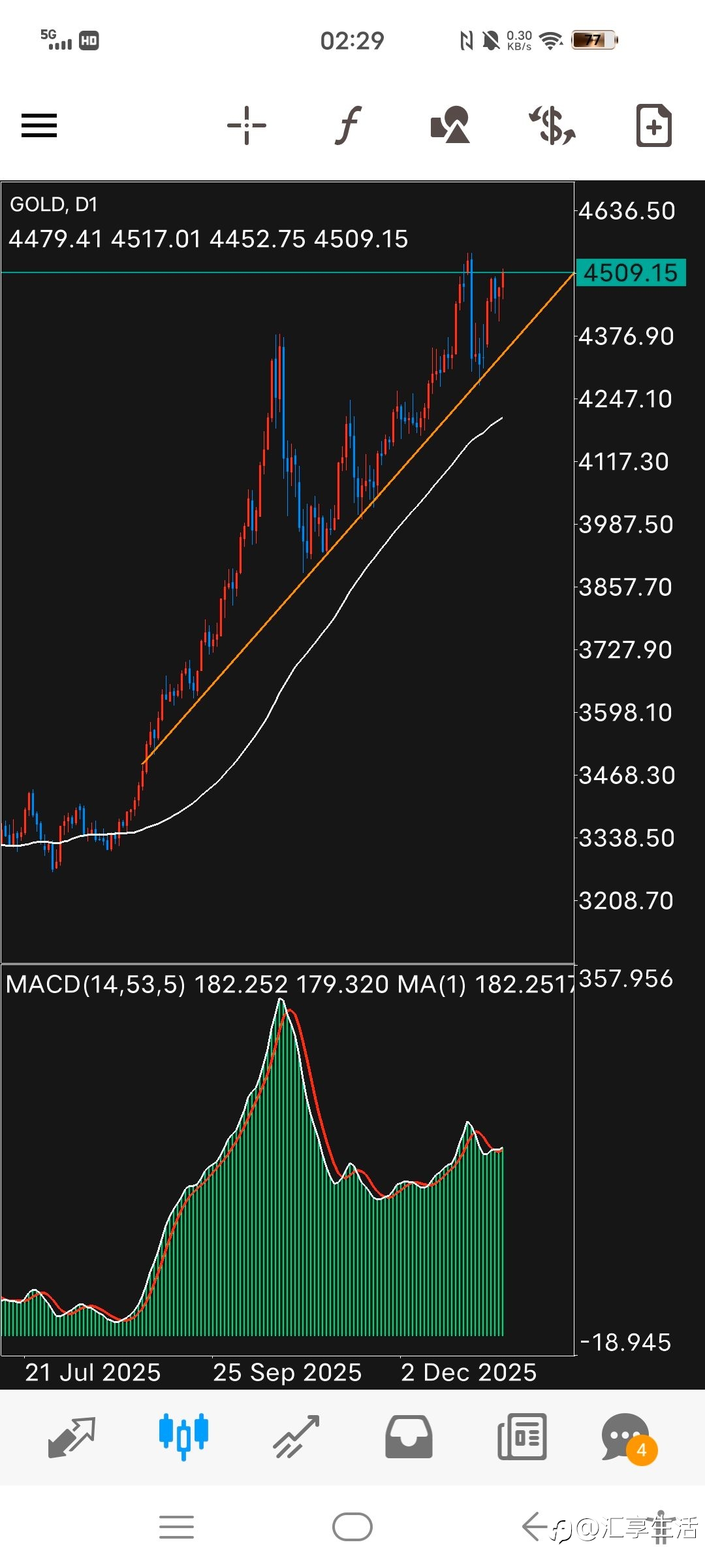 2个月内,从 11 月到 12 月,从 5000 到翻倍后的 10407.65。这 108% 的收益,于我而言,不仅仅是 账户数字的跳动,更是我在对抗人类本能、磨练心性后,市场给予我的第一枚荣誉勋章。 1. 关于“等待”:学会与孤独和解 这两个月,我学到最深刻的道理不是如何看指标,而是耐心。 交易的大部分时间其实是在“等”。等那个属于我的信号,等那个确定的趋势。以前总觉得不持仓就是亏损,现在才明白,乱动才是深渊。就像猎人守候猎物,最顶级的猎人,往往拥有最极致的耐心。成功的交易,是等出来的,而不是做出来的。 2. 关于“趋势”:顺应天时,不逆水行舟 我开始学会抬头看路,抓住大