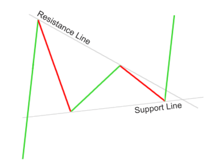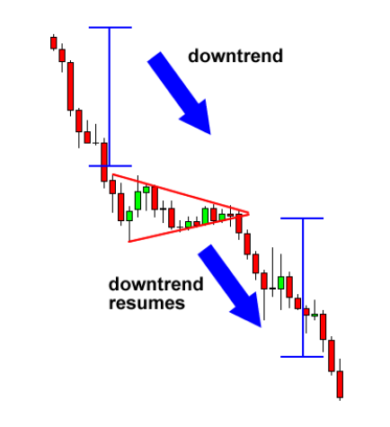 Tương tự như hình chữ nhật, Cờ Đuôi Nheo là mô hình biểu đồ tiếp nối được hình thành sau những động thái mạnh. Sau một động thái đi lên hoặc đi xuống lớn, người mua hoặc người bán thường dừng lại để lấy hơi trước khi đưa cặp tiền này đi xa hơn theo cùng một hướng. Do đó, giá thường hợp nhất và tạo t
