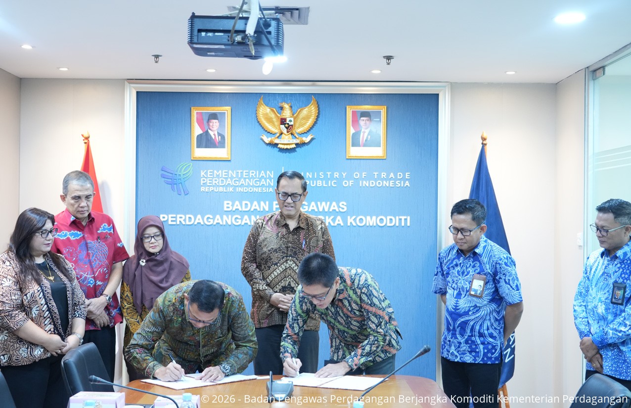 Badan Pengawas Perdagangan Berjangka Komoditi (Bappebti) melakukan Penandatangan Perjanjian Kerja Sama Pembiayaan (PKP) dengan PT Bank Pembangunan Daerah Kalimantan Selatan (PERSERODA) sebagai Penyalur Pembiayaan Skema Subsidi Resi Gudang (SSRG) yang disaksikan oleh Kepala Bappebti di Kantor Bappebt