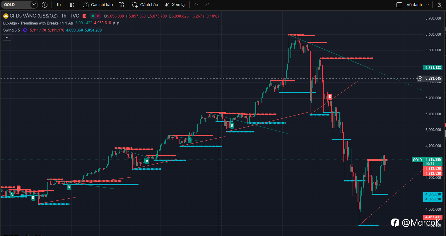 #GOLD (Week 02/02 - 06/02/2026) Biên độ tuần: 4331 - 5244, trục xoay 5057 Kịch bản giá tương tự như Silver, chỉ khác ở chỗ: Gold có tỷ lệ mở rộng đà tăng luôn ở đầu phiên ngày mai chứ không giảm hiệu chỉnh kiểm tra đáy giá nữa. Trường hợp giá giảm kiểm tra lại đáy giá, dự kiến quanh 4770 Giá