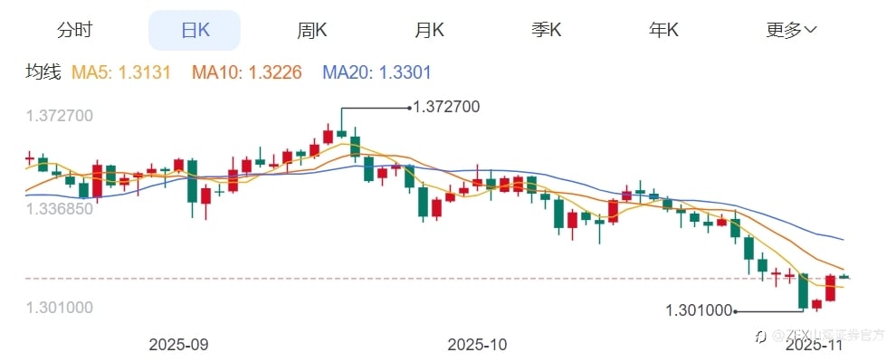11月6日,英国央行宣布,将基准利率维持在4%不变,符合市场普遍预期。 一、市场反应 英银决议公布后,市场即时反应显示出明显的避险情绪。伦敦时间12:00刚过,英镑兑美元汇率短线下挫24点,最低触及1.3071,较决议前高点回落约0.2%。这一波动主要源于投票结果的鹰派倾向超出预期——四位委员支持立即降息25个基点,高于路透社调查此前预期的三位。 与此同时,英国富时100指数下跌0.23%,金融板块领跌,能源和制药类股也出现抛售。债券市场同样敏感,2年期英国国债收益率下降2个基点至3.79%,反映出投资者对未来宽松政策的预期升温。相比之下,美股期货在亚欧时段波动有限,道琼斯指数期货微跌0.1%