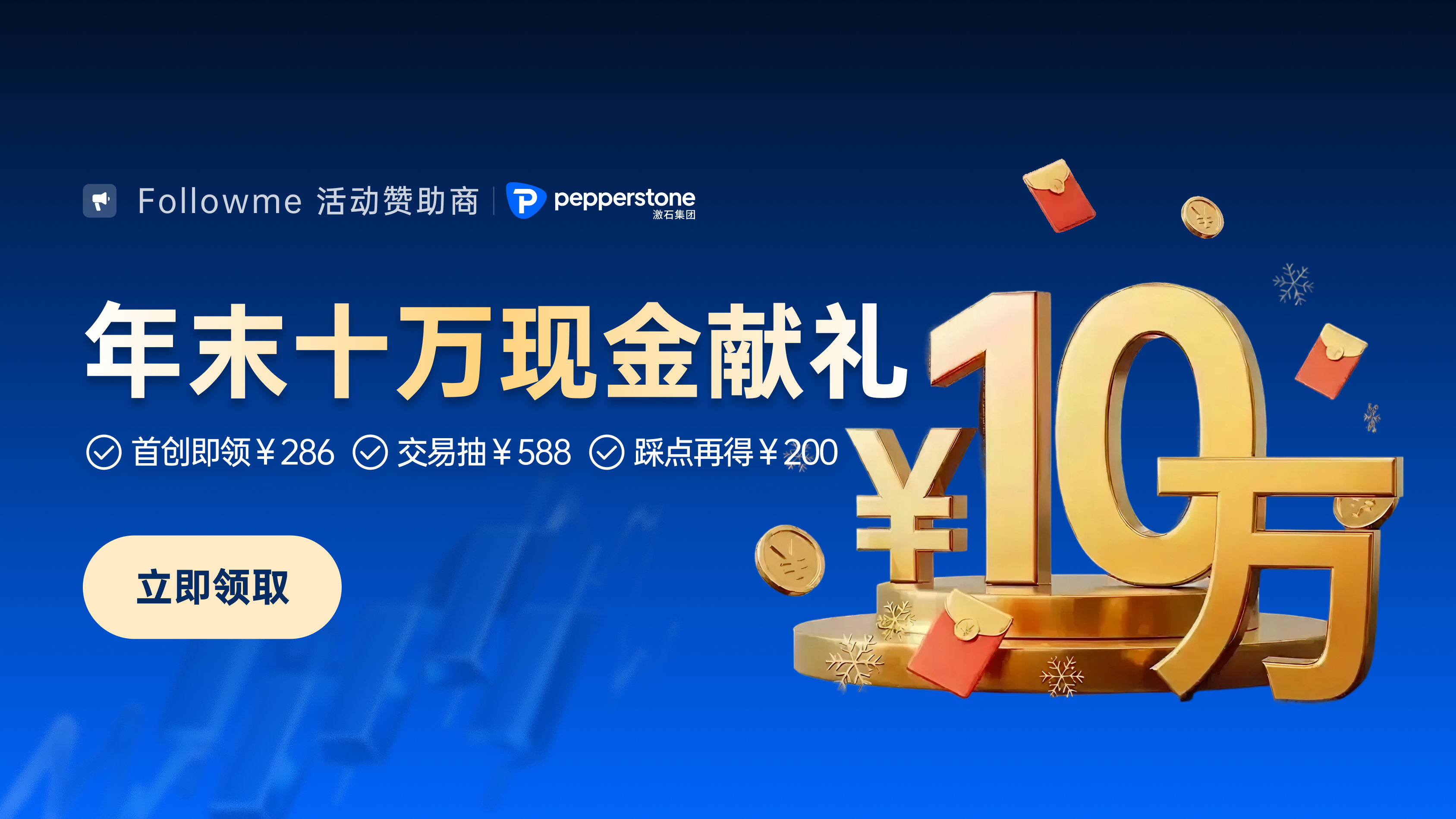活动时间:2025.12.25-2026.2.27 #Pepperstone# 年末礼遇,福利来袭! · 新户注册即领现金红包; · 完成交易任务100% 抽现金; · 每周踩点挑战,拼手速拼运气。 ⚠ 限量活动,奖励先到先得! 奖励发放: 参与本活动的用户们,请私信联系“活动助手”登记MT4信息以核查,未有来登记将视为自动放弃领取。奖励预计在每周五发放,如遇节假日,则延期处理。 活动一:新户福利,注册即领红包 通过本活动指定链接首次