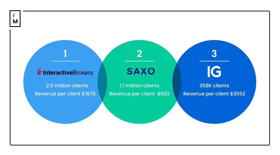 随着一些最大的国际经纪公司发布(或准备发布)他们的 2023 年业绩,我们认为,将他们去年的业绩与主要竞争对手进行比较,以及一些关键数据告诉我们有关他们的业务和发展的信息,可能会很有趣。更广阔的经纪商市场。 由于盈透证券最近公布了 2023 年财务数据,我们认为从这家位于康涅狄格州格林威治的公司开始是合适的。 收入猛增:盈透证券以 42% 的增幅领先 盈透证券的总收入增长了 42%,达到 43 亿美元,与 IG 2023 财年 5% 的增长相比(这家总部位于英国的交易提供商于 2023 年 6 月结束),盛宝的 11 % 的增长以及 Fidelity 同期管理的 12% 的增长。 截至 202