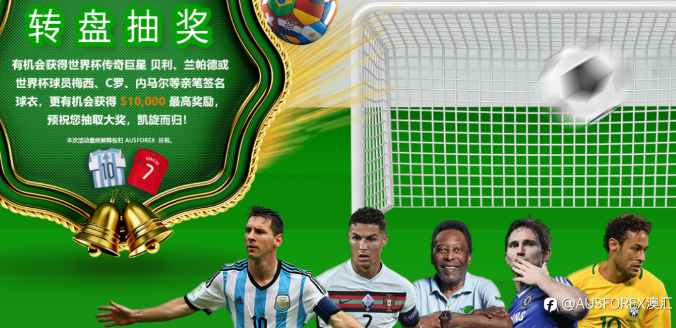 2022年卡塔尔世界杯已圆满结束,AUSFOREX 圣诞活动已隆重开启,此活动为了感谢和回馈客户及合作伙伴对我司的信任和支持。AUSFOREX 会在未来的日子里不断完善交易平台,建立更完善的交易系统,用专业的团队和专业知识为所有客户和合作伙伴提供更卓越的服务。 登录账户会员区,单次入金 $1000 及以上即可参与转盘抽奖,有机会获得世界杯传奇巨星 贝利、兰帕德或世界杯球员 梅西、C罗、内马尔等亲笔签名球衣,更有机会获得 $10,000 最高奖励,预祝您抽取大奖,凯旋而归! 以下为此次圣诞活动详情: (一)、活动时间(北京时间):2022 年 12 月 19 日 08:00:00 - 2023