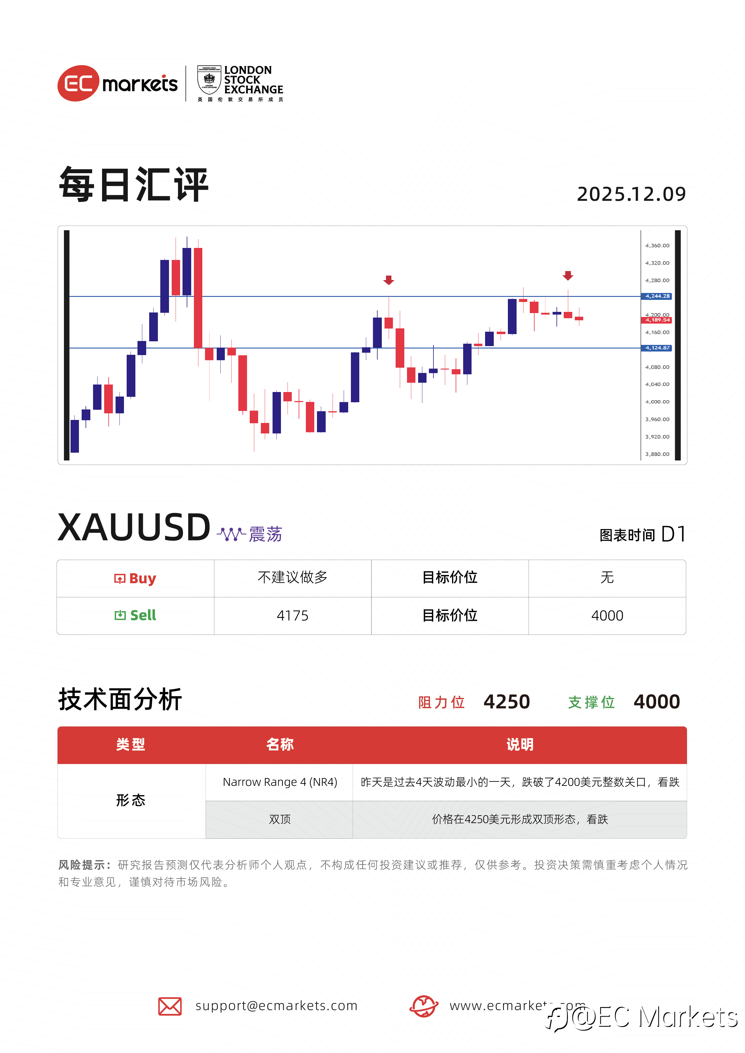 EC Markets 每日汇评 | 12月9日XAUUSD