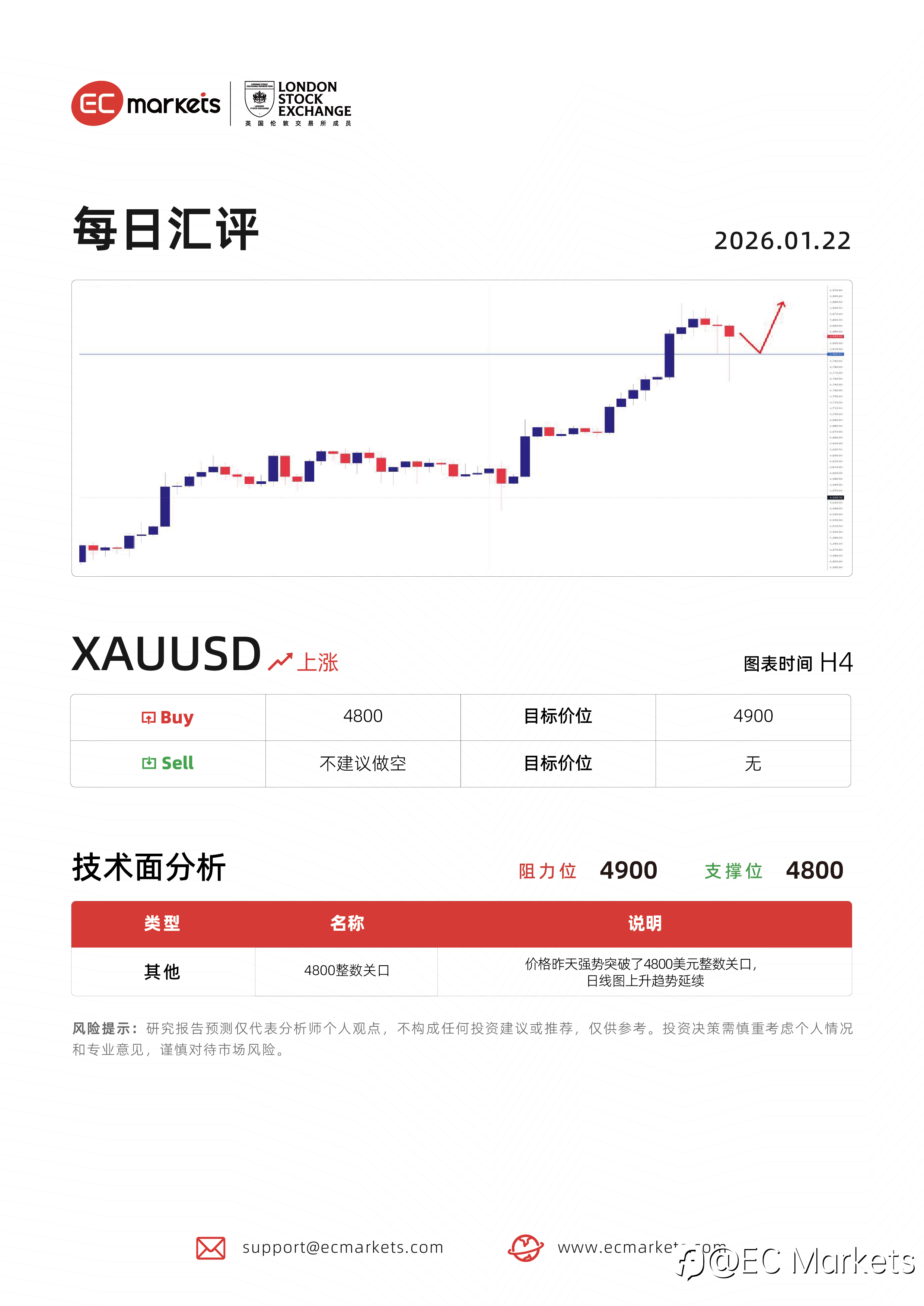 EC Markets 每日汇评 | 1月22日XAUUSD