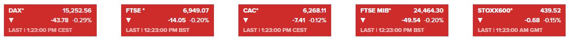 FX168财经报社(北美)讯 欧洲股市周二(4月27日)小幅收低,全球投资者为今日开始的美联储为期两天的会议做准备,投资者消化了一系列公司财报。 泛欧斯托克600指数收盘下跌0.35点,跌幅0.08%,报439.85点,其中基本资源类股领跌,跌幅1.2%,旅游和休闲类股逆势上涨3%; 德国DAX30指数收盘下跌47.07点,跌幅0.31%,报15249.27点; 英国富时100指数收盘下跌18.15点,跌幅0.26%,报6944.97点; 法国CAC40指数收盘下跌1.76点,跌幅0.03%,报6273.76点; 欧洲斯托克50指数收盘下跌9.48点,跌幅0.24%,报4011.35点; 西班
