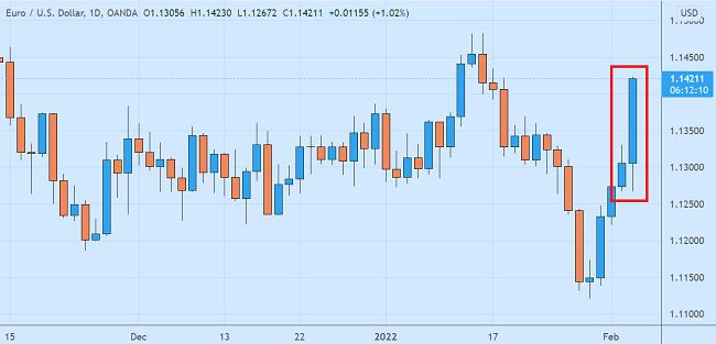 Nilai tukar euro meroket terhadap semua mata uang pada perdagangan sesi Eropa hari ini (3/2/2022). Bank sentral Eropa (ECB) mengakui bahwa laju inflasi Zona Euro kemungkinan akan terus berada pada tingkat lebih tinggi daripada perkiraan sebelumnya, sehingga membuka peluang untuk perubahan kebijakan
