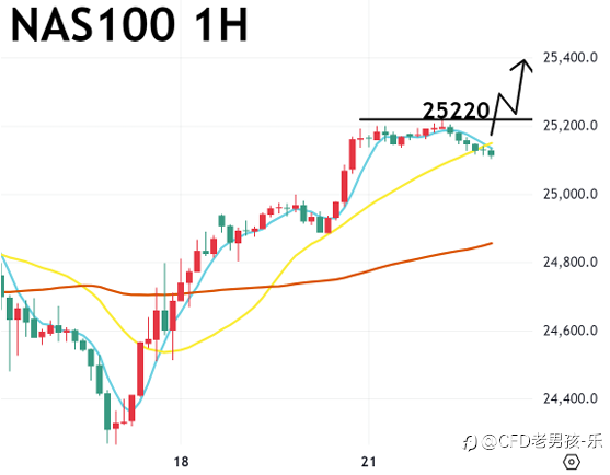09/26 晚盘策略:黄金/纳指/美油 美数据利好打压降息预期 美国三大股指回调 【基本面分析】 周四(25日)美国当周初请失业金人数低于预期;8月耐用品订单月率优于预期;Q2GDP上修至3.8%,创近两年来新高。经济数据优于预期却未助攻美股,近期市场焦点仍是美联储降息,数据利多打压了降息预期,美国三大股指小幅回调。 油市方面,伊拉克产能恢复,引发供给过剩一律,不过俄罗斯延长柴油出口禁令,市场也预期特朗普会推出进一步俄罗斯禁令,油价多空角力,呈现整理格局。 【技术分析】 纳指一小时图,均线呈现空头排列后,MA5与MA20纠结,空方动能减弱,走势震荡整理,此波回调尚未有结束迹象,延续短空走势,若