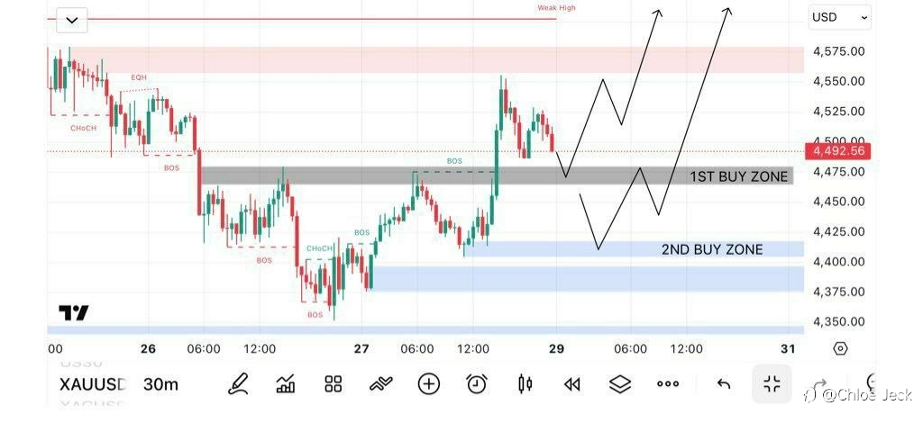Gold has swept liquidity above 4600 twice and formed a double top, signaling strong seller activity inside a major supply zone. The market remains under bearish pressure below 4620, suggesting potential downside continuation. 📉 Market Structure • Pattern → Double Top • Trend → Bearish Below 4620 •