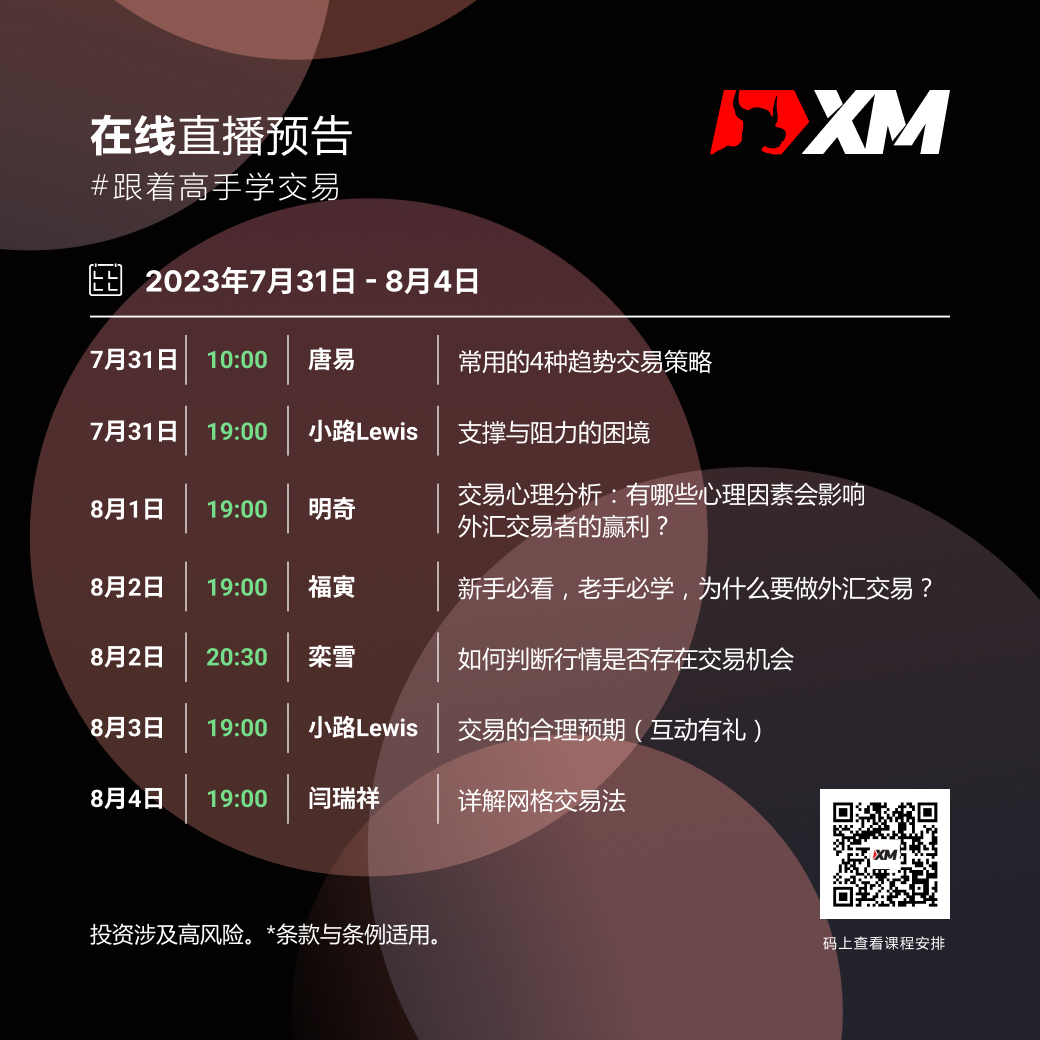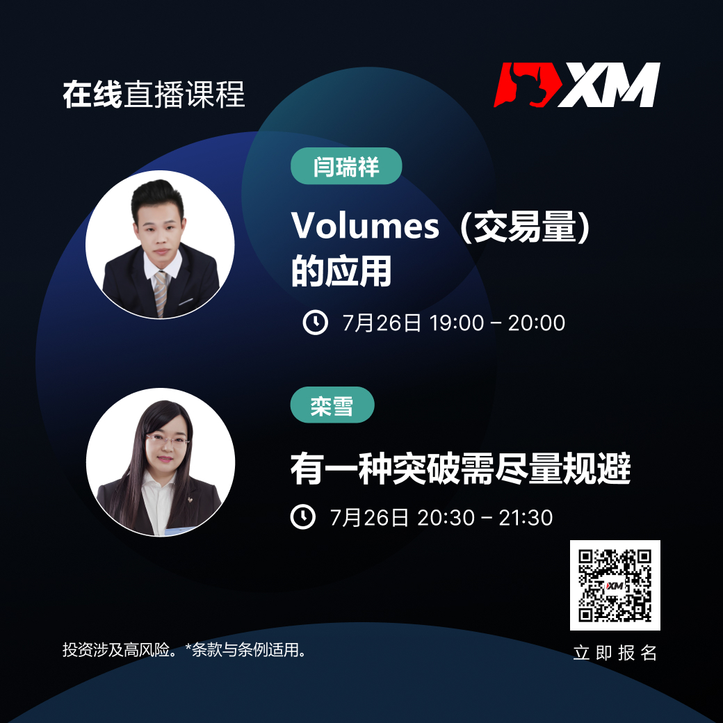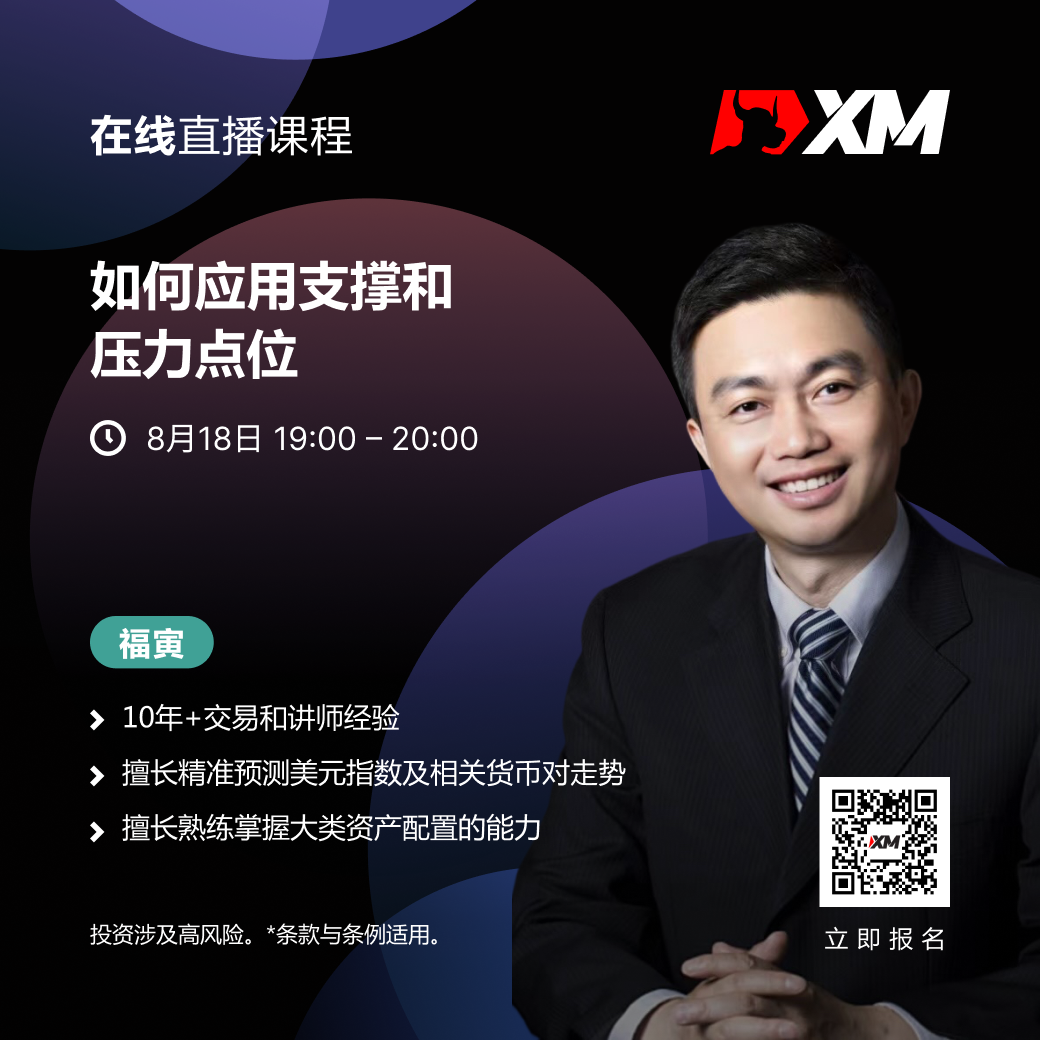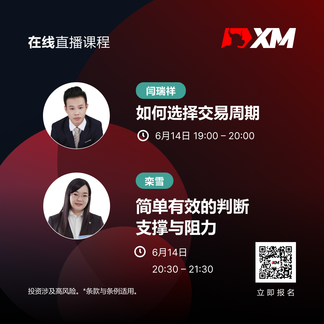 交易周期有分三个时间框架,较高时间框架、中期时间框架、和较低时间框架。我们该如何选择适合自己的交易周期呢? 就在今晚北京时间19:00,闫瑞祥老师将详解如何选择交易周期。 1)市场周期如何选择 2)不同周期如何应对 支撑与阻力代表着转折点。交易者需靠交易周期寻找支撑或者阻力,才能提前判断好大概的方向。 今晚北京时间20:30,栾雪老师教你判断支撑与阻力,让你交易不迷茫。 1)认清方向为前提 2)运用周期关系寻找支撑阻力 3)验证其有效性和合理性 扫描下方海报二维码,即刻报名在线讲座! 了解更多,即刻访问XM官网:https://www.x