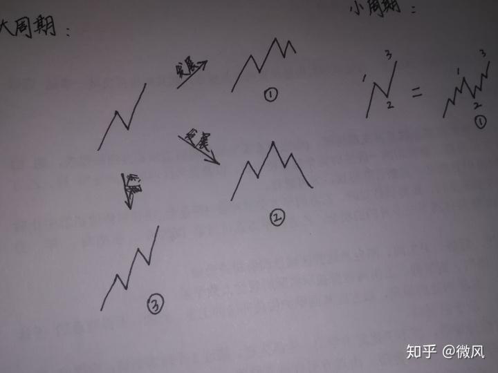 对于周期关系,咱们听得最多的是大周期决定小周期,小周期引领大周期,顺大势,逆小势。这几句话,咱们先不分辨对与错。先看看市场是如何走 大周期后续走势有上涨,横盘,反转三种情况,而大周期3浪在小周期有2种走势,一般最大区别在大周期2浪处。 大脑存在思维惯性,这是新手或老人都不能避免的,往往看到大周期3浪会得出第三种走势——上涨,接下来会有个5浪。 新手和老人的区别是:老人认为大周期怎样走取决于小周期和大周期关键点位。不会认死理,认为市场只能走上涨。俗称跟随市场。 市场何时结束上涨走势?这个无人能预测市场何时结束。 咱们回到正题:大周期决定小周期,小周期引领大周期,顺大势,逆小势。这句话不对不错,因