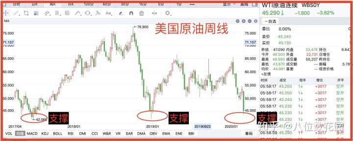 举例,现在原油下方42的支撑连续两次被测试到,当下的行情距离42的支撑
